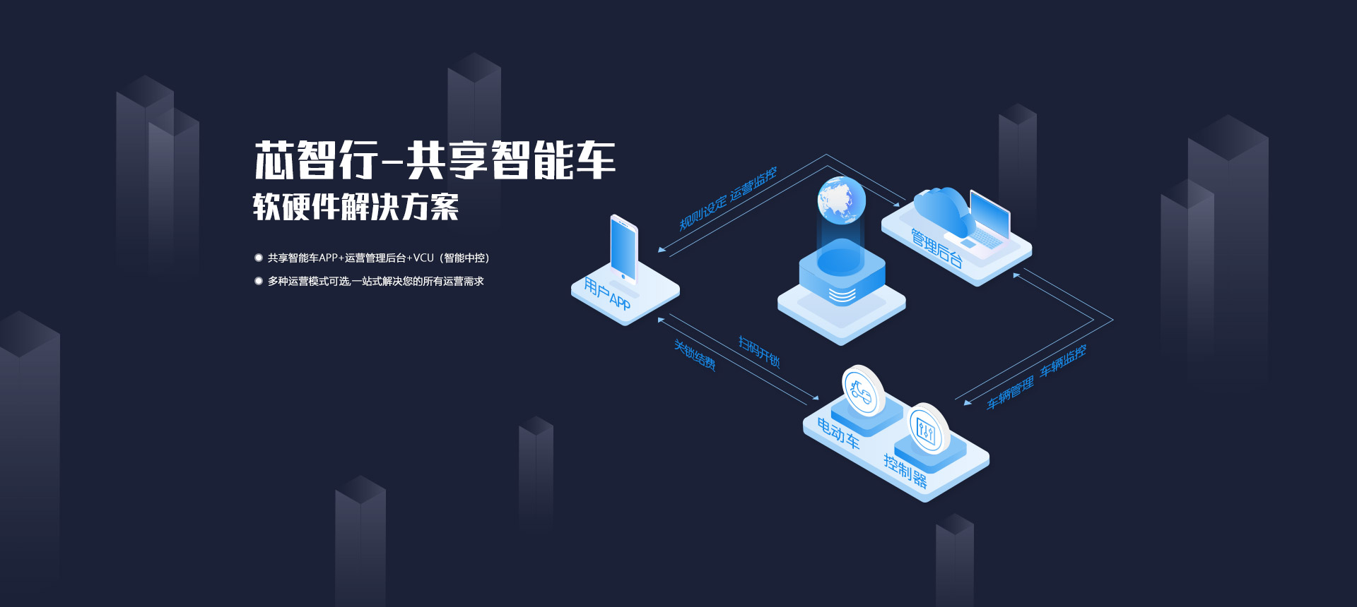 共享智能車(chē)APP + 運(yùn)營(yíng)管理后臺(tái) + VCU(智能中控)= 一站式解決方案